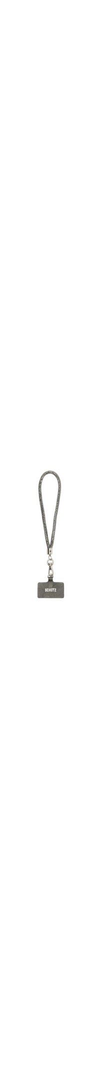 A alça preta é produzida em malha de cristais. A peça possui espessura média, chaveiro da marca retangular removível e fecho lagosta metálico para ajuste.