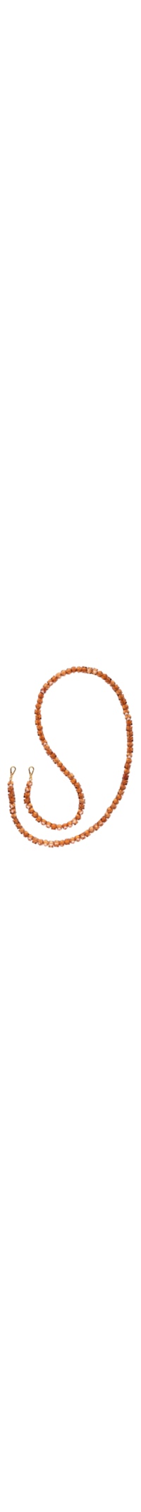 A alça marrom é confeccionada em acrílico. A peça possui espessura média, comprimento alongado, contas em acrílico e fechamento por fecho lagosta.