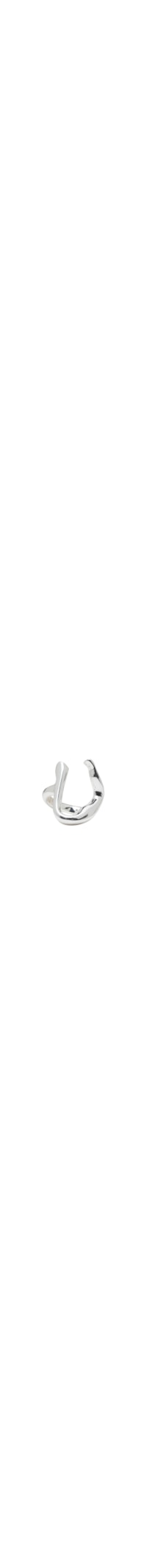 O anel prata é produzido por metal banhado a ródio. A peça possui espessura média, formato orgânico, abertura posterior e acabamento polido.