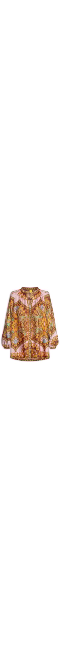 Nossa aposta para um visual moderno e divertido é abusar do mix de estampas. Aposte nesta bata Farm combinada com uma saia jeans curta, brincos detalhados e sandálias para finalizar a produção.