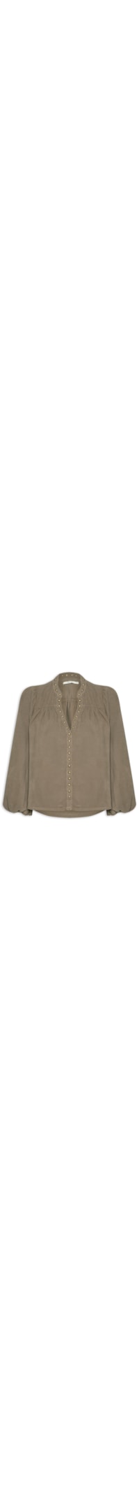 - Decote V com aplicação de tachas metálicas