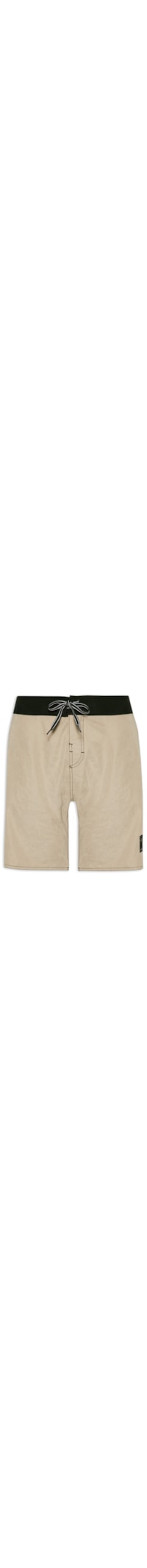 A bermuda bege é confeccionada em tactel. A peça possui cintura média, cós em cor contrastante, bolsos na parte frontal, bolso com ilhós e aba com fechamento por velcro na parte posterior, tag da marca na parte frontal, shape solto, caimento reto, acabamento pespontado e fechamento frontal por velcro e cordão de amarração.