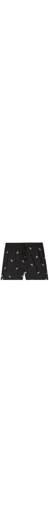 Bermuda de banho com bordado de tubarões, confeccionada em tecido leve e macio, à prova d'água e de secagem rápida. Conta com um confortável forro estilo cueca em microfibra macia, na mesma tonalidade. A cintura franzida com cordão possui uma abertura lateral prática para chaves.