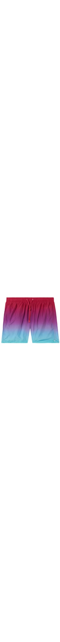 Calção de banho com estampa em tons de fúcsia e verde desbotados, confeccionado em tecido leve e macio, à prova d'água e de secagem rápida. Conta com um confortável forro estilo cueca em microfibra macia, na mesma tonalidade. A cintura franzida com cordão possui uma abertura lateral prática para chaves.