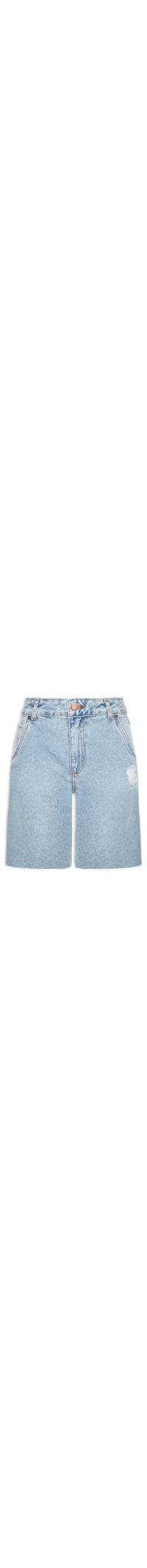A bermuda azul é confeccionada em sarja com lavagem jeans sem elasticidade. A peça solta ao corpo, possui cintura alta, cós com passantes aplicados, five pockets* com rebites aplicados, sendo os frontais em modelo faca e o posterior com logo da marca bordado, detalhe destroyed** na parte frontal, recortes posteriores, efeito estonado, acabamento por corte a fio e fechamento frontal por zíper e botão metálico.