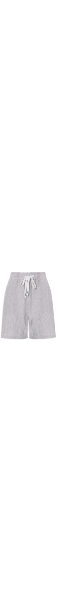 A bermuda azul é confeccionada em tecido leve com superfície texturizada sem elasticidade. A peça solta ao corpo possui cintura alta, cós com elástico e tira alongada embutida para ajuste e amarração frontal, bolsos frontais modelo faca, bolso posterior e comprimento curto.