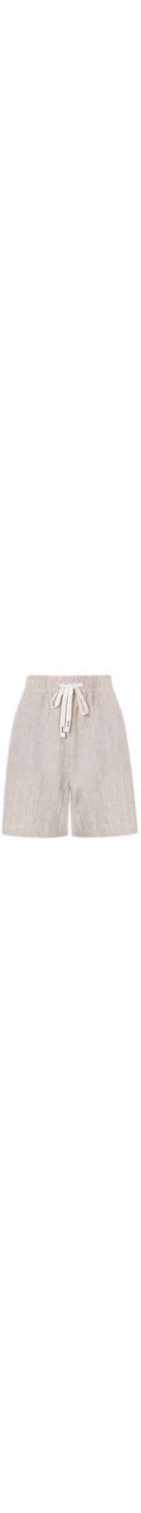 A bermuda off white é confeccionada em tecido leve com superfície texturizada sem elasticidade. A peça solta ao corpo possui cintura alta, cós com elástico e tira alongada embutida para ajuste e amarração frontal, bolsos frontais modelo faca e comprimento curto.