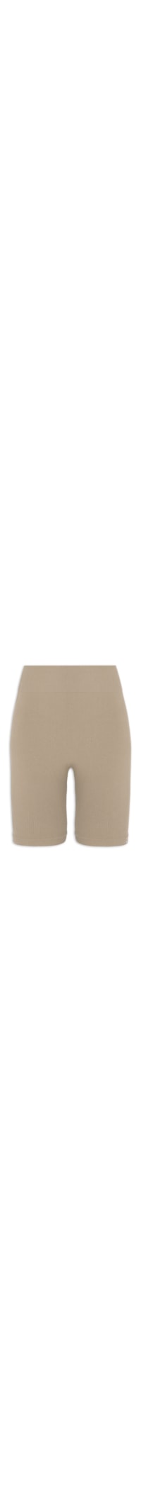 A bermuda bege é confeccionada em malha com superfície canelada e média elasticidade. A peça justa ao corpo de modelo biker* possui cintura alta, recorte anatômico na parte inferior, tag da marca aplicada na barra frontal e comprimento curto.