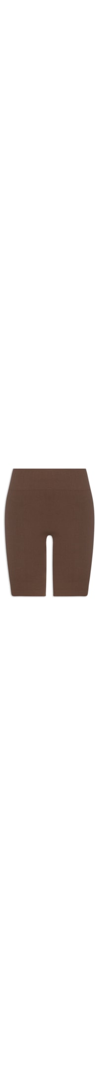 A bermuda marrom é confeccionada em malha de poliamida com acabamento canelado e média elasticidade. A peça justa ao corpo possui cintura alta, cós amplo e comprimento curto.