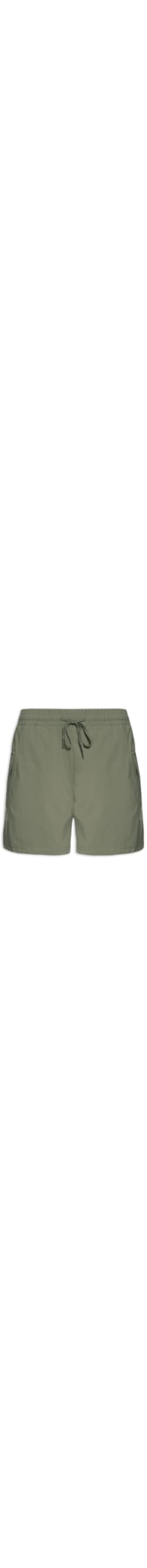 A bermuda verde é confeccionada em tecido leve com alta elasticidade. A peça solta ao corpo possui cintura alta, cós com elástico e cordão embutido para ajuste e bolsos laterais modelo cargo.