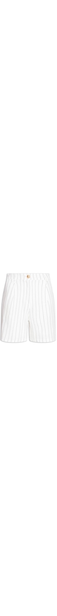 A bermuda off white é confeccionada em tecido leve com toque de linho com baixa elasticidade. A peça solta ao corpo possui cintura alta, cós com passantes aplicados, bolsos frontais de modelo faca, bolso posterior decorativo, padronagem de listras em cor contrastante preto e fechamento frontal por zíper e botão.