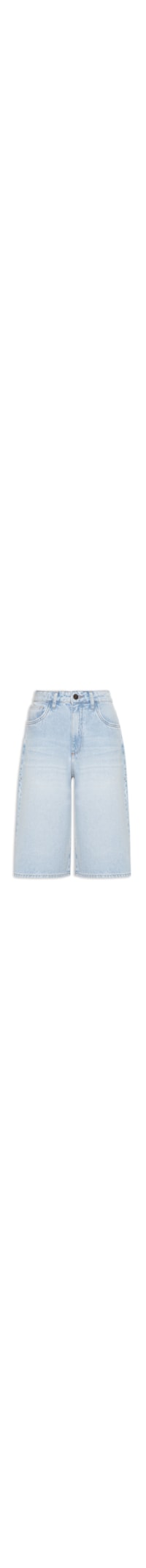 A bermuda azul é confeccionada em sarja com lavagem jeans e sem elasticidade. A peça solta ao corpo possui cintura alta, cós com passantes aplicados, five pockets*, tag metalizada da marca aplicada na parte posterior, recorte posterior, efeito estonado, comprimento na altura dos joelhos e fechamento frontal em zíper e botão.