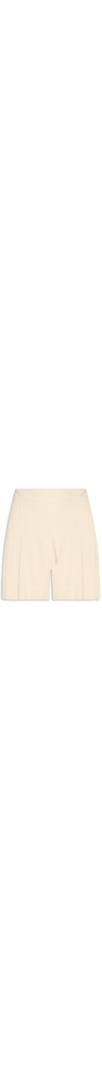 A bermuda bege é confeccionado em tecido leve com toque de linho sem elasticidade. A peça solta ao corpo possui cintura alta, bolsos frontais de modelo faca, pregas frontais, pences posteriores, comprimento curto e fechamento posterior por zíper.