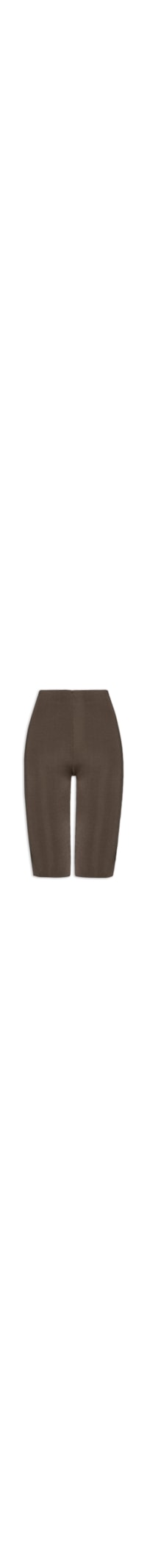 A bermuda marrom é confeccionado em tricot com alta elasticidade. A peça solta ao corpo possui cintura alta, cós com elástico embutido e comprimento curto.