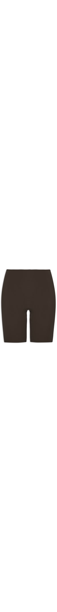 A bermuda modeladora marrom é confeccionada em malha leve com média elasticidade. A peça justa ao corpo possui cintura alta, cós estreito liso, sem costuras laterais visíveis e forro.