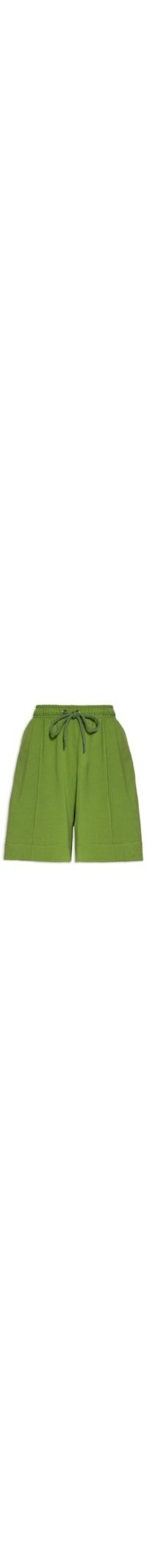 A bermuda verde é confeccionado em malha com baixa elasticidade. A peça solta ao corpo possui cintura alta, cós com elástico e cordão embutido para ajuste frontal, bolsos frontais embutidos, recortes frontais, bolso posterior e comprimento curto.