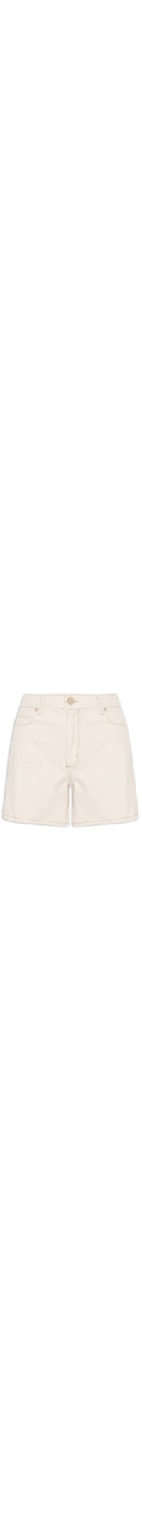 A bermuda bege é confeccionada em sarja sem elasticidade. A peça solta ao corpo possui cintura alta, cós com passantes para cinto, *Five pockets, comprimento curto, acabamento pespontado em cor contrastante, logo da marca bordado na parte posterior, fechamento frontal por botão e zíper.
