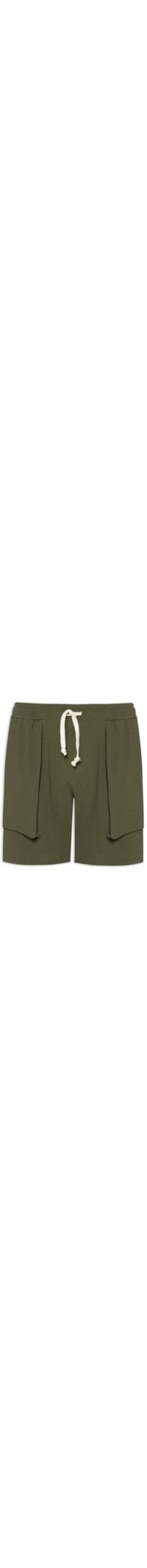 A bermuda verde é confeccionada em malha texturizada com baixa elasticidade. A peça solta ao corpo possui cintura média, cós com elástico e cordão embutido para ajuste, bolso posterior com tag da marca e bolsos frontais.