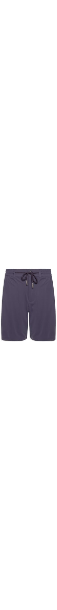 A bermuda azul é confeccionada em malha de poliamida com baixa elasticidade. A peça solta ao corpo possui cintura média, cós com passantes e elástico e cordão embutidos, bolsos frontais modelo faca, bolsos posteriores embutidos e tag da marca aplicada na parte posterior.
