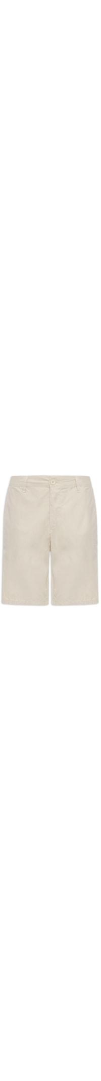 A bermuda bege é confeccionada em sarja sem elasticidade. A peça solta ao corpo possui cintura média, cós com passantes aplicados, bolsos frontais, bolsos posteriores embutidos com fechamento por botão, comprimento curto e fechamento frontal por zíper e botão.