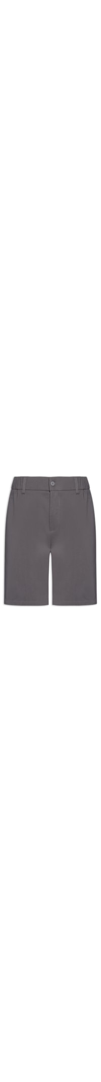 A bermuda cinza é confeccionada em tecido leve com alta elasticidade. A peça solta ao corpo possui cintura média, cós com passantes e elástico embutido, bolsos frontais modelo faca, bolsos posteriores embutidos com fechamento por botão, pences posteriores, comprimento curto e fechamento por botão e zíper.