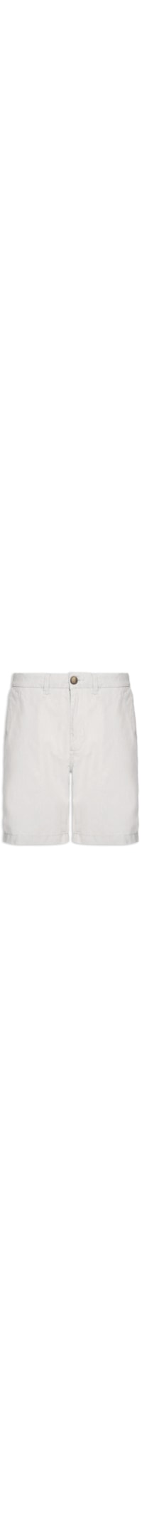 A bermuda cinza é confeccionada em tecido leve de algodão sem elasticidade. A peça possui cintura média, cós com passantes aplicados, bolsos frontais modelo faca, bolsos posteriores embutidos, pences posteriores, tag da marca aplicada na parte posterior e fechamento frontal por botão e zíper.