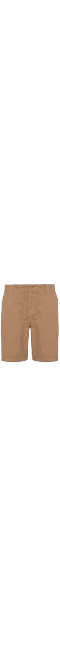 A bermuda marrom é confeccionada em algodão sem elásticidade. A peça solta ao corpo possui cintura média, passantes aplicados no cós, bolsos frontais no modelo faca, bolsos posteriores, tag da marca metalizada aplicada próximo ao corpo, fechamento por zíper e botão frontal e comprimento médio.