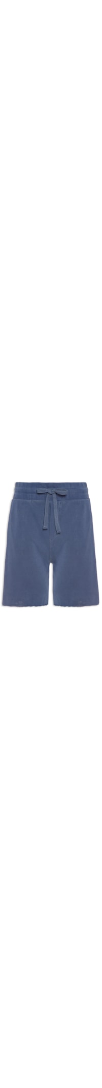 A bermuda azul marinho é confeccionada em moletinho. A peça solta ao corpo possui cintura média, cós elástico com cordão embutido para ajuste, bolsos frontais modelo faca, bolso posterior com detalhe de ilhós e barra com acabamento em corte à fio.