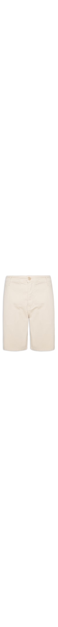 A bermuda bege é confeccionada em sarja. A peça solta ao corpo possui cintura média, cós com passantes para cinto aplicados, dois bolsos frontais, dois bolsos posteriores, tag da marca aplicada na parte posterior em cor contrastante, comprimento curto, acabamento pespontado, e fechamento frontal por zíper e botão.