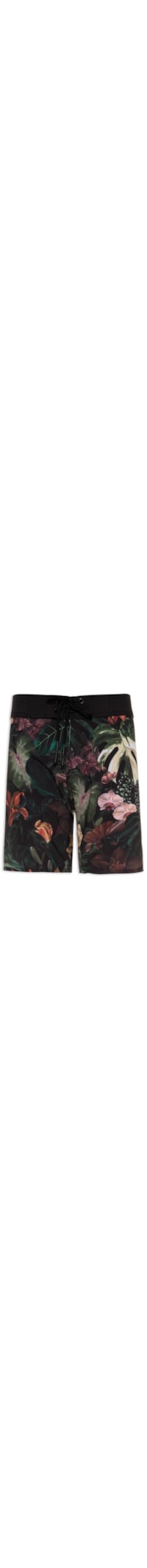A bermuda preta é confeccionada em tactel. A peça possui cintura média, cós com recortes frontais, bolso posterior com fechamento por aba sobreposta e velcro e aplicação de ilhós e tag da marca, estampa floral em cores contrastantes e shape solto.