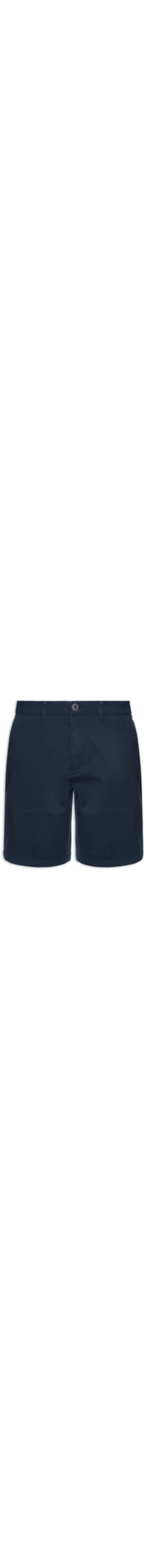 A bermuda azul é confeccionada em sarja com baixa elasticidade. A peça solta ao corpo possui cintura média, cós com passantes aplicados, bolsos frontais de modelo faca, pences posteriores, bolsos posteriores decorativos com botão e fechamento frontal por botão e zíper.