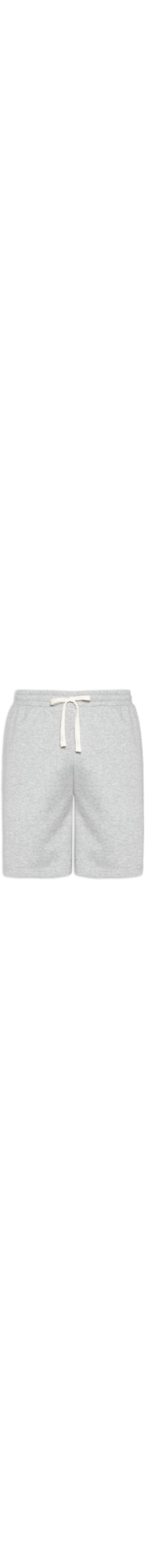 A bermuda cinza é confeccionada em malha de moletom sem elasticidade. A peça solta ao corpo possui cós elástico com cordão embutido para ajuste frontal e bolsos frontais modelo faca.