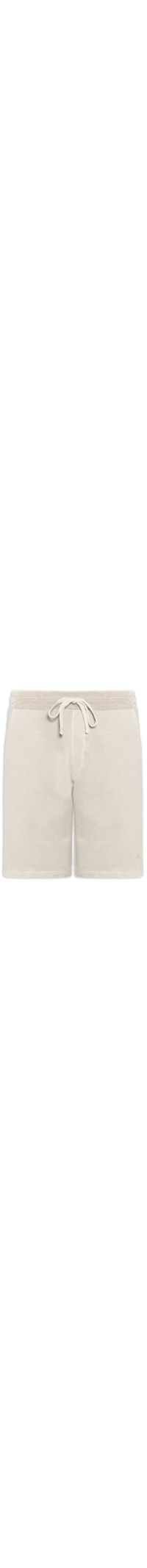 A bermuda bege é confeccionada em moletom sem elasticidade. A peça solta ao corpo possui cintura média, cós elástico com cordão embutido para ajuste frontal, bolsos frontais modelo faca, bolso posterior embutido e logo da marca aplicado na parte frontal.