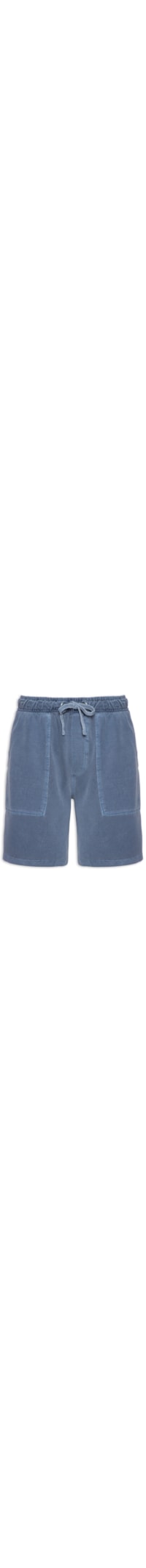 A bermuda azul é confeccionada em moletom. A peça possui cintura média, cós elástico com cordão embutido, bolsos frontais embutidos, bolsos posteriores, tag da marca aplicada na parte posterior, shape solto, caimento reto e acabamento pespontado.