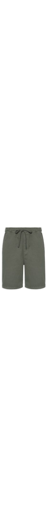 A bermuda verde é confeccionada em sarja sem elasticidade. A peça solta ao corpo possui cintura média, cós elástico com cordão embutido para ajuste, bolsos frontais modelo faca, bolso posterior embutido e tag da marca aplicada na parte frontal.