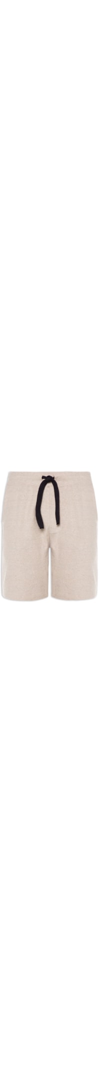 A bermuda bege é confeccionada em malha de algodão reciclado. A peça possui cintura alta, cós com cordão embutido para ajuste, bolsos frontais modelo fala, bolsos posteriores, caimento reto, barra com acabamento corte à fio, fechamento por amarração e acabamento pespontado.
