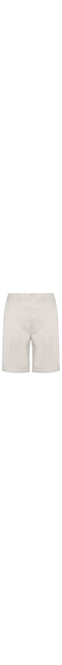 A bermuda bege é confeccionada em sarja com média elasticidade. A peça solta ao corpo possui cintura média, cós com passantes aplicados, bolsos frontais modelo faca, bolsos posteriores embutidos, acabamento pespontado e fechamento frontal por zíper e botão.