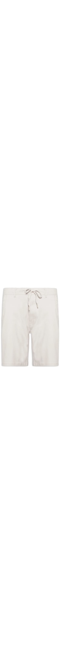 A bermuda bege é confeccionada em sarja com baixa elasticidade. A peça solta ao corpo possui cós com passantes, elástico na parte posterior e cordão para amarração frontal embutidos, recortes frontais e posteriores, bolsos frontais modelo faca, bolsos posteriores embutidos e fechamento frontal por botão, cordão e zíper.