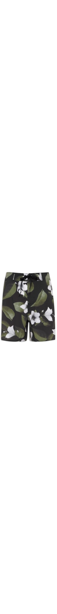 A bermuda preta é confeccionada em tactel. A peça possui cintura média, cós em com cordão aplicado na parte frontal para ajuste, pences posteriores, bolso posterior com ilhós, fechamento por velcro e tag em tecido aplicada, logo da marca aplicado na parte frontal na altura da barra, tag emborrachada com nome e logo da marca aplicada na altura do cós na parte frontal, estampa floral em cores contrastantes, shape solto e fechamento frontal por velcro.