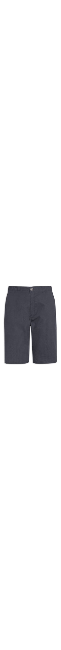 A bermuda azul marinho é confeccionada em sarja. A peça possui cintura média, cós com passantes aplicados, bolsos frontais modelo faca, bolsos posteriores modelo embutido com fechamento por botão, micro estampa de gravataria, comprimento curto, caimento reto, acabamento pespontado e fechamento frontal por botão e zíper.