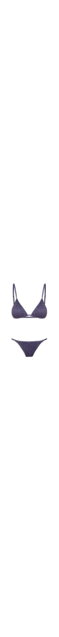 O biquíni azul marinho é confeccionado em malha canelada com superfície texturizada e alta elasticidade. O top de modelo cortininha possui alças finas, forro, bojo removível, laterais finas, padronagem abstrata preta com fios de lurex na cor dourado, e fechamento posterior por regulagem. A calcinha de modelo string possui laterais finas reguláveis, padronagem abstrata preta com fios de lurex na cor dourado, recorte posterior e forro.