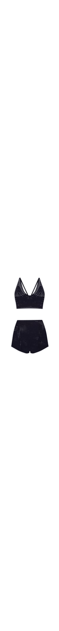 O biquíni azul marinho é confeccionado em tricot de alta elasticidade. O top possui decote U, alças médias afunilados na parte posterior e trama com detalhe de recortes vazados. A calcinha de modelo hot pant* possui cintura alta, laterais largas e trama com detalhe de recortes vazados na parte frontal.