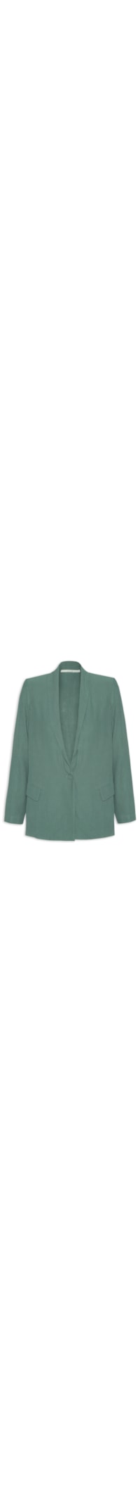 O blazer verde é confeccionado em tecido leve sem elasticidade. A peça solta ao corpo possui lapela xale, ombreiras embutidas, mangas longas, bolsos frontais decorativos e fechamento frontal por botão.
