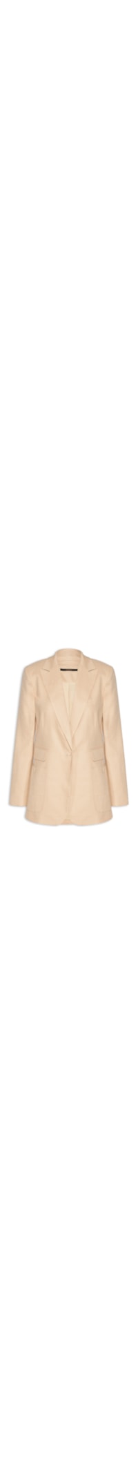 O blazer bege é confeccionado em linho sem elasticidade. A peça solta ao corpo possui lapela chanfrada, mangas longas com botões para ajuste nos punhos, recortes frontais e posteriores, bolsos frontais com aba sobreposta, forro e fechamento frontal por botão.