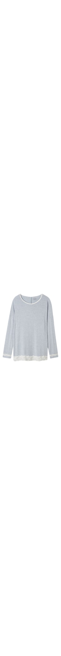 Blusa de manga comprida em modal com decote redondo. Peça enriquecida com detalhes em renda nos punhos das mangas e no fundo. A modelo tem 179 cm de altura e veste o tamanho P.