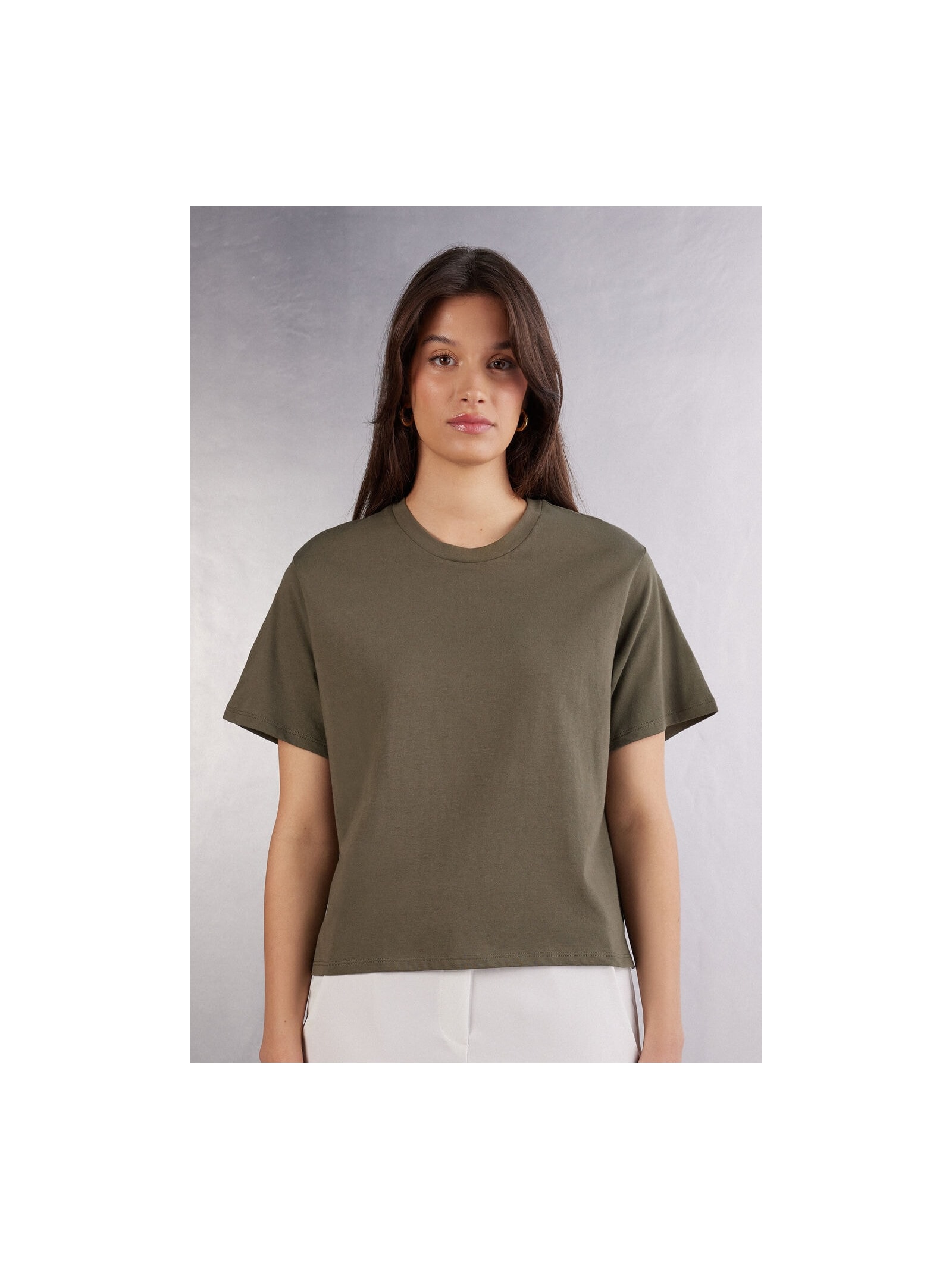 A modelo tem 1,75 m de altura e veste o tamanho P.