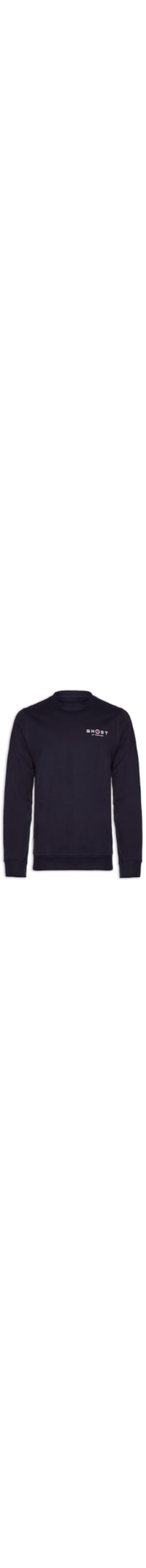 A blusa azul é confeccionada em moletom. A peça possui gola careca com acabamento canelado, mangas longas, estampa em silk e cor contrastante na altura do tórax, estampa em silk e cores contrastantes na parte posterior, tag da marca aplicada na parte frontal, shape solto, caimento reto e acabamento canelado.