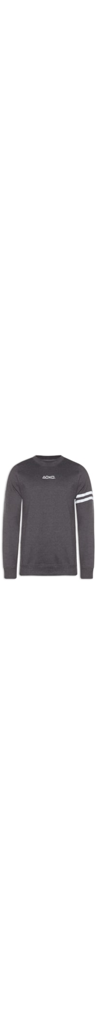 A blusa cinza é confeccionada em moletom. A peça possui gola careca com acabamento canelado, mangas longas, estampa em silk e cor contrastante aplicada na parte frontal e posterior, detalhe de listras em cor contrastante aplicada na manga esquerada, shape solto, caimento reto e acabamento canelado.