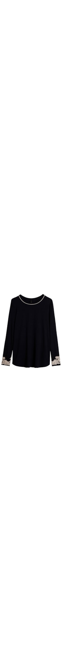 Blusa de manga comprida com decote redondo em modal com punho alto aprimorado com barra em renda bicolor contrastante.SKU: 7420-parent-15184