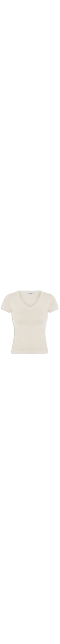 A blusa off white é confeccionada em malha leve com alta elasticidade. A peça justa ao corpo possui decote V e mangas curtas.
